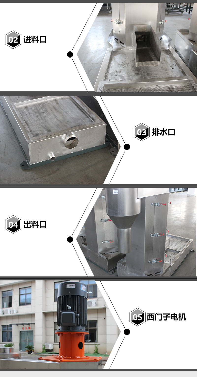 用途:適用于水環(huán)切粒后塑料顆粒清洗過后表面水分。 特點: 1:脫水效果好、效率高、使用壽命長。 2:精心設(shè)計清理方便。 3:采用不銹鋼,使用壽命長。